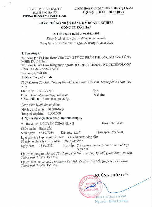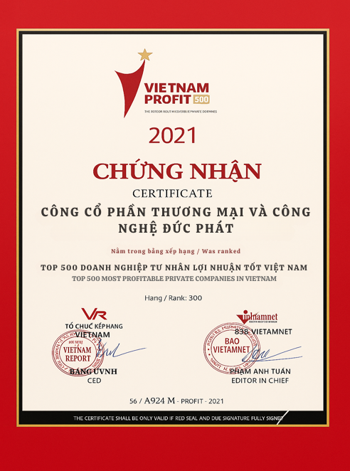 CÔNG TY CỔ PHẦN THƯƠNG MẠI VÀ CÔNG NGHỆ ĐỨC PHÁT là tâm huyết và đam mê của cả Ban giám đốc và tập thể CBCNV trong công ty nhằm cung cấp các dịch vụ và giải pháp Logistics hoàn hảo nhất tới khách hàng. Từ một khởi đầu khiêm tốn, đến nay ĐỨC PHÁT đã trở thành một trong những đơn vị Cung ứng hạ tầng cơ sở Logistics uy tín và là đối tác chiến lược của nhiều thương hiệu mạnh như Vingroup, Kobelco, Wabag, Aquaone, Viwaseen, Ree M&E, JFE, King Swing Coporation, VN Tech và các tập đoàn nhà nước lớn tại Việt Nam như Vinaconex, Công ty nước sạch Hà Nội.v.v. Chúng tôi luôn tự hào và khao khát mang đến cho khách hàng những dịch vụ hiệu quả nhất với chi phí thấp nhất. Trong suốt quá trình chinh phục và tạo dấu ấn, ĐỨC PHÁT luôn kiên định với mục tiêu phải tạo ra những giá trị “Uy tín – Chất lượng – Bền vững” và cam kết luôn đặt lợi ích của khách hàng lên hàng đầu, góp phần tạo nên một thương hiệu uy tín và là đối tác đáng tin cậy, thúc đẩy sự thành công chung của nền kinh tế Việt Nam.